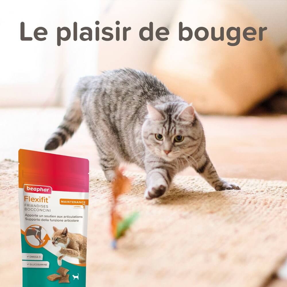 Les friandises Beaphar Flexifit® ont été spécialement formulées pour soutenir la mobilité et le confort articulaire des chats. Leur formule multi-actions à base de glucosamine, omégas 3 et vitamine C aide à maintenir des articulations souples et à favoriser des os solides.