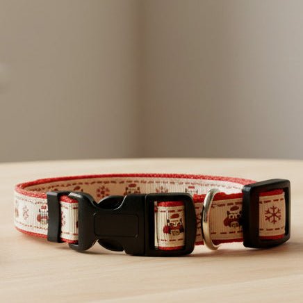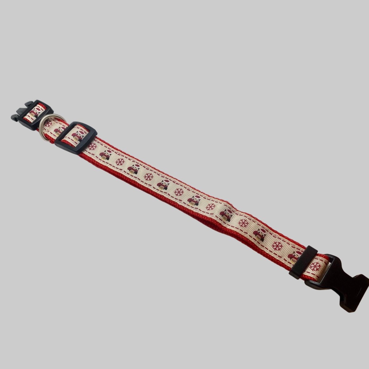 Chaque collier est confectionné à la main, avec soin et passion. Le ruban tissé aux motifs de hibou de Noël est solidement cousu sur une sangle en nylon très souple. Ce matériau ne retient pas l’humidité, ne se détend pas et empêche naturellement le développement de moisissures.