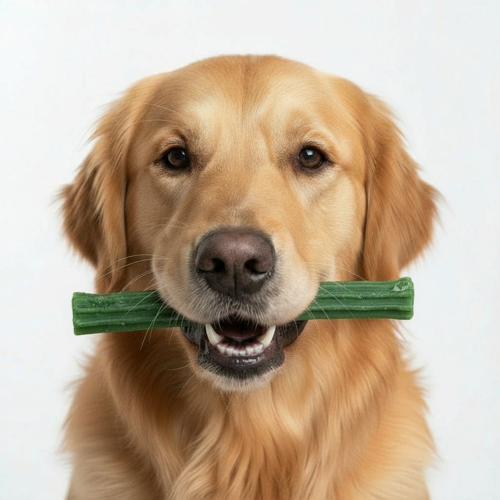 Grâce à sa forme, le stick se maintient bien dans la gueule, nettoie même les dents arrière les plus difficiles à atteindre et prévient la mauvaise haleine et la formation de tartre.
