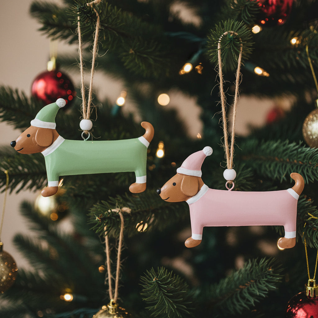 Ajoutez une touche adorable et originale à votre sapin avec cette suspension de Noël en forme de teckel 🐶✨
