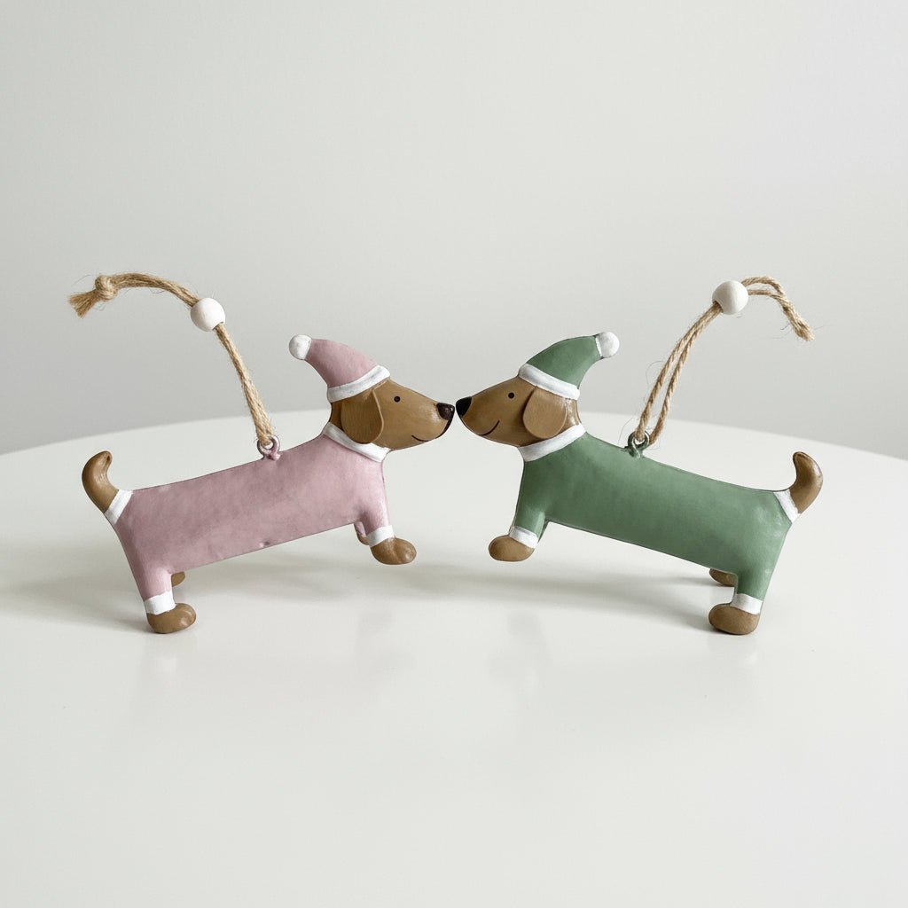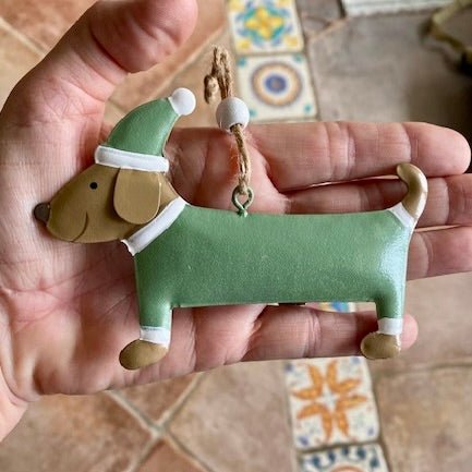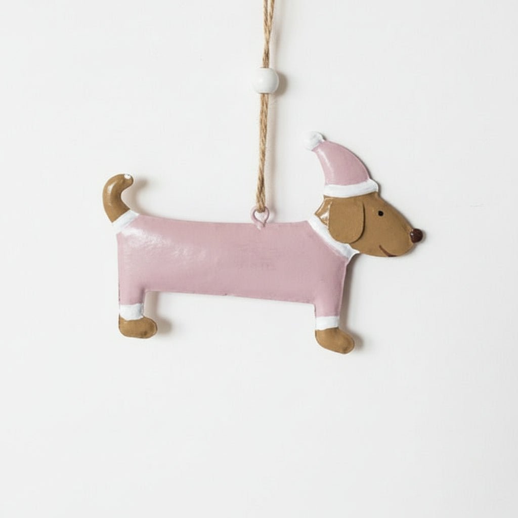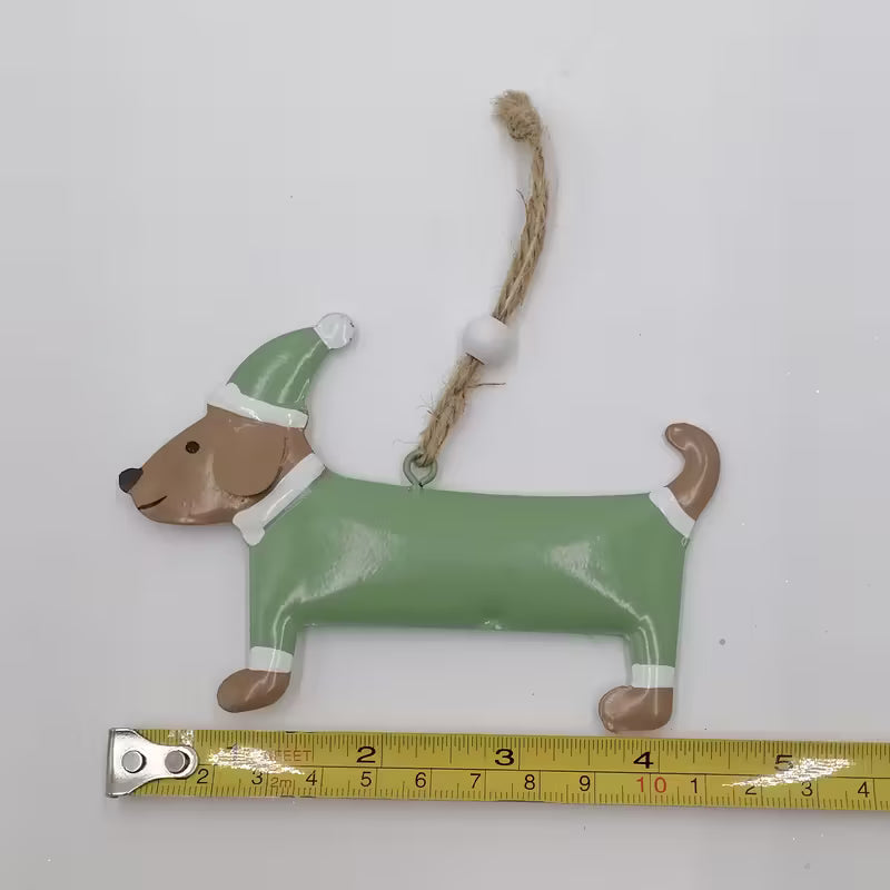 🎄 Suspension de Noël en forme de Teckel – Décoration métallique