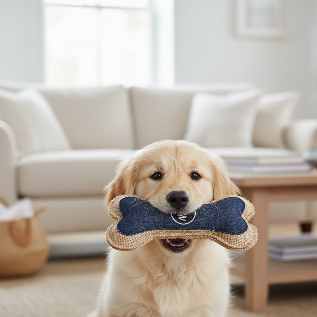 Made from four layers of natural jute and one layer of recycled denim, it offers excellent strength and a texture that dogs love. A durable, safe toy free of harmful chemicals 🌎