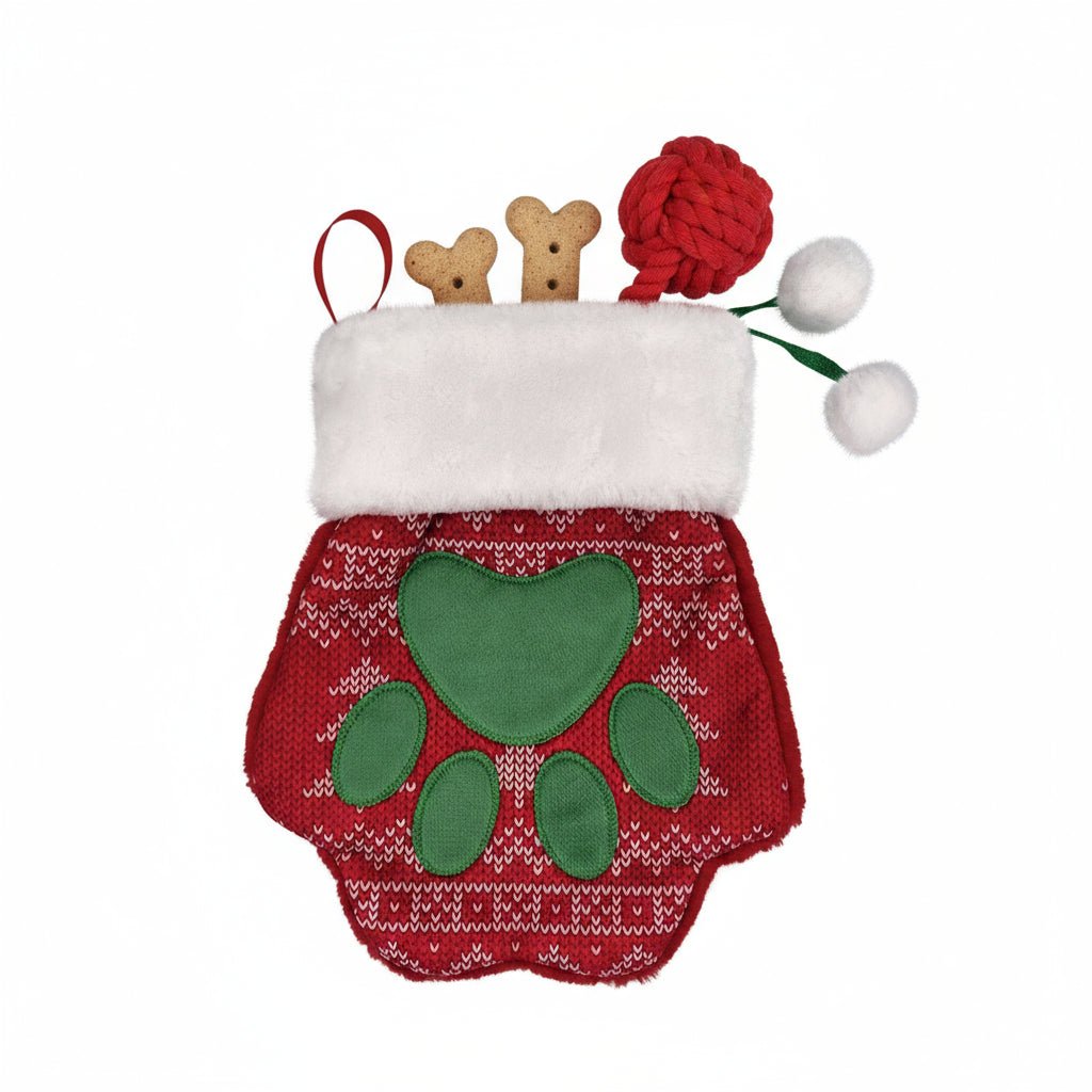 The KONG Christmas stocking is an adorable paw-shaped gift bag in festive Christmas colours. Made of soft plush with little pom-poms, it's ideal for filling with toys, treats, or small surprises for your pet during the holidays. 🎁