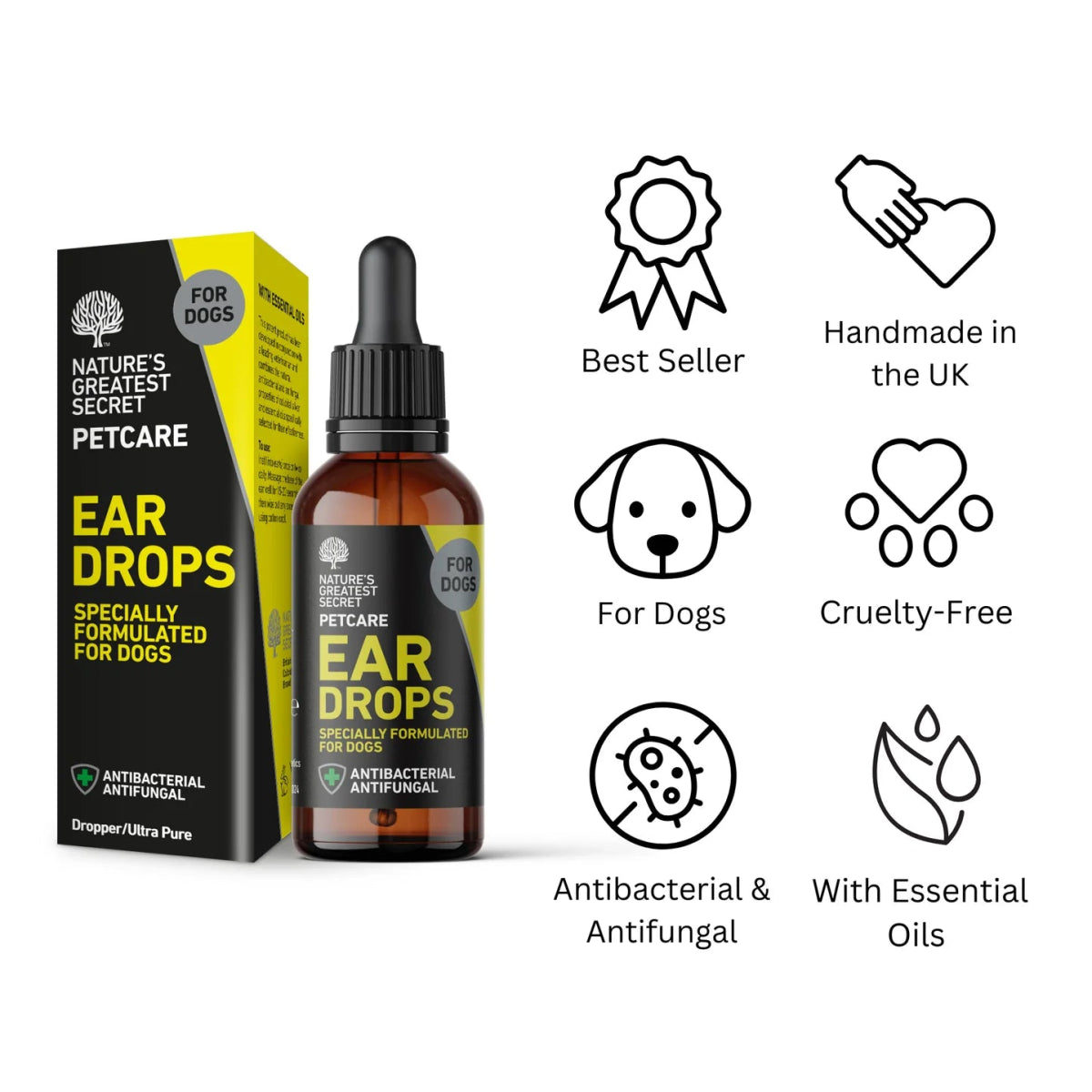 These 100% natural ear drops cleanse, soothe irritations and help prevent common ear infections in dogs.