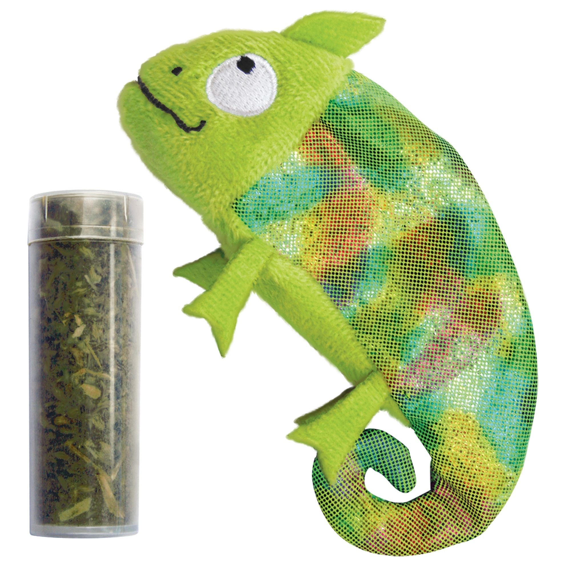 Treat your feline friend to a game full of color and stimulation with the KONGÂź Refillables Chameleon! Unlike its wild cousin, which blends into nature, this chameleon is easy to spot thanks to its bright colors and shimmering skin. âš